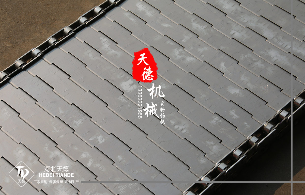 【鏈板輸送帶簡(jiǎn)介】鏈板輸送帶非常堅(jiān)固,鏈條驅(qū)動(dòng),用于中等和大負(fù)荷輸送。鋼板彎曲形成合葉,使用支軸將合葉和鏈條串在一起。兩端的鏈條可以使用開口銷或者墊圈來固定,使用開口銷方便拆卸,維護(hù)方便。