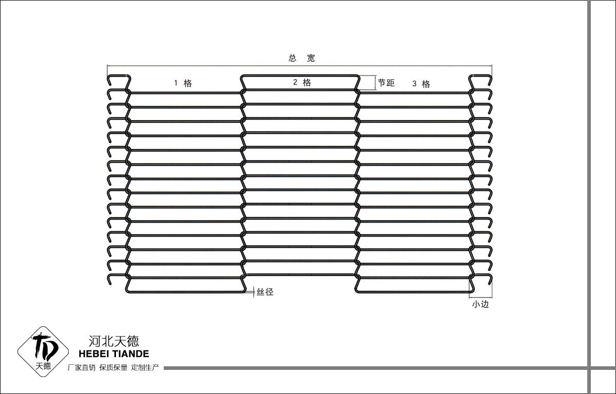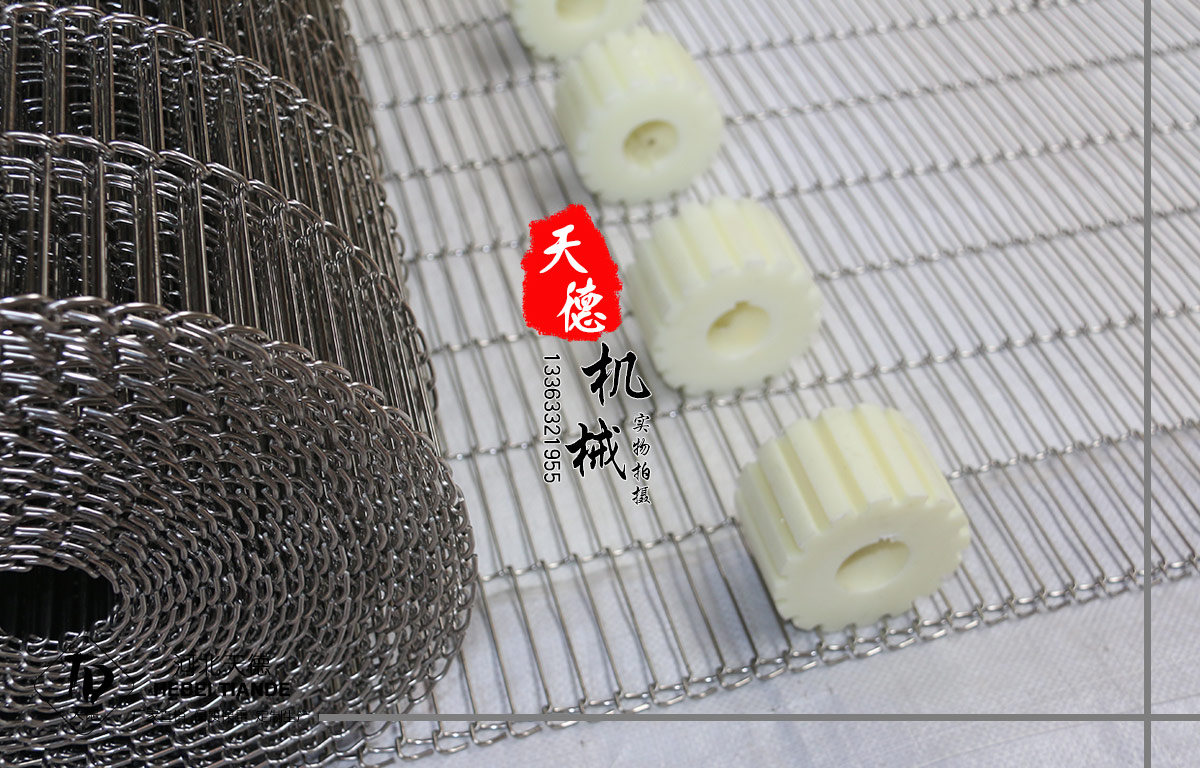 乙字網(wǎng)帶使用不銹鋼高彈柔韌絲制作。網(wǎng)帶多用單小邊結(jié)構(gòu)(常用),雙小邊結(jié)構(gòu)用于特殊用途??梢杂糜谥本€輸送機(jī),也可以用于轉(zhuǎn)彎輸送機(jī)。