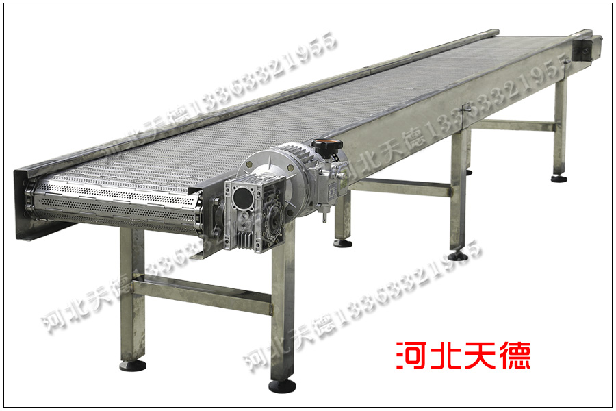 江蘇鹽城孫總定制的鏈板輸送機(jī),采用不銹鋼304材質(zhì),用來輸送餐具到下一道工序進(jìn)行清洗,長期在水利浸泡使用,為了使用時(shí)間長久所以孫總定制的整機(jī)為不銹鋼304材質(zhì)。